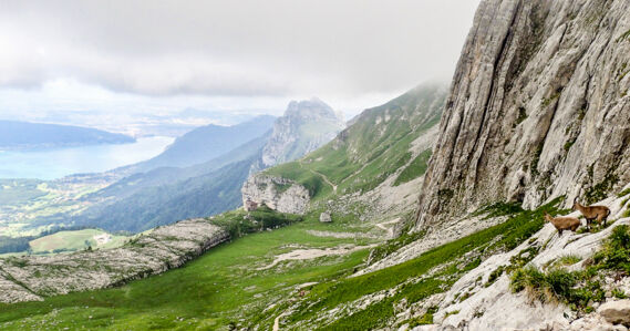 Départ pour une montée jusqu’au col des Frêtes. L’ascension est pentue mais laissera place à un nouveau panorama à couper le souffle à la base des dents de Lanfon. Après un pique-nique nous rejoindrons la pointe de Talamarche qui nous offre un panorama exceptionnel sur le lac d’Annecy, les Aravis, le Mont-Blanc !