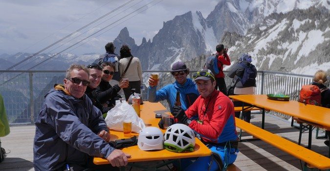 Sur le glacier et malgré le chaleur estivale caniculaire cette année, la petite équipe a pu découvrir le coeur du massif du Mt Blanc , la combe maudite, la tour ronde, la dent du géant et d’autres sommets depuis ce magnifique point de vue.