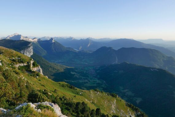 Départ après le petit déjeuner face au Mont-Blanc. Nous longerons les crêtes du Parmelan pour rejoindre le vallon d’Ablon puis le plateau des Glières.