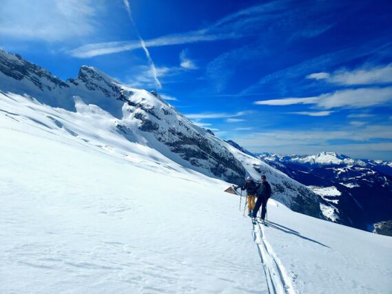 Jour 2 : Deux options pour explorer les environs du refuge de Gramusset et consolider vos acquis. Nous pouvons choisir entre l'ascension de la Pointe des Carmélites (2477 mètres) ou du Col des Verts 2499 mètres , offrants une vue panoramique exceptionnelle sur les massifs environnants, notamment le majestueux Mont Blanc. Les deux itinéraires vous permettront de profiter de la beauté des paysages, de mettre en pratique les techniques apprises la veille et de terminer la journée en beauté sur les pistes du domaine skiable du Grand-Bornand. Imaginez-vous, au sommet de la Pointe des Carmélites ou du Col des Verts, contemplant le Mont Blanc s'étendant à l'horizon, une expérience inoubliable garantie !