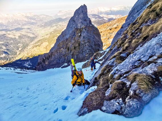 - Descendre en rappel ski aux pieds ou avec des crampons